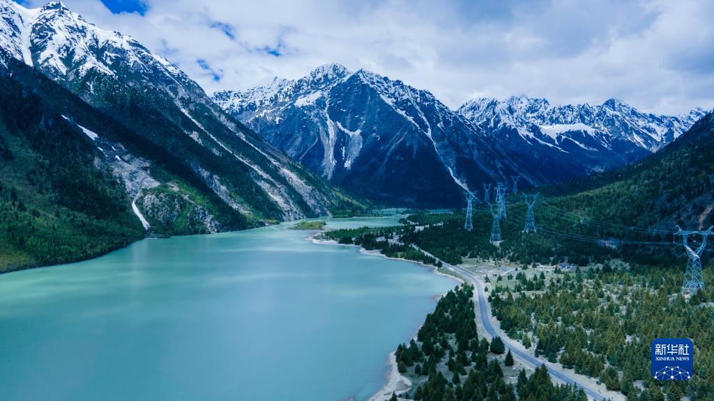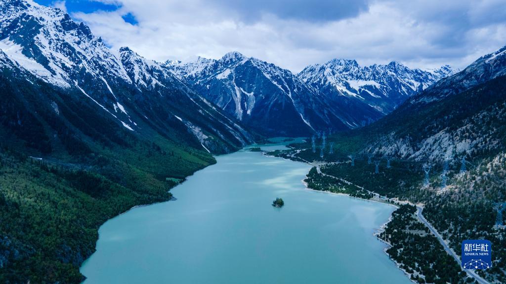 這是5月30日拍攝的然烏湖風(fēng)光(無人機照片)。新華社記者 陳尚才 攝