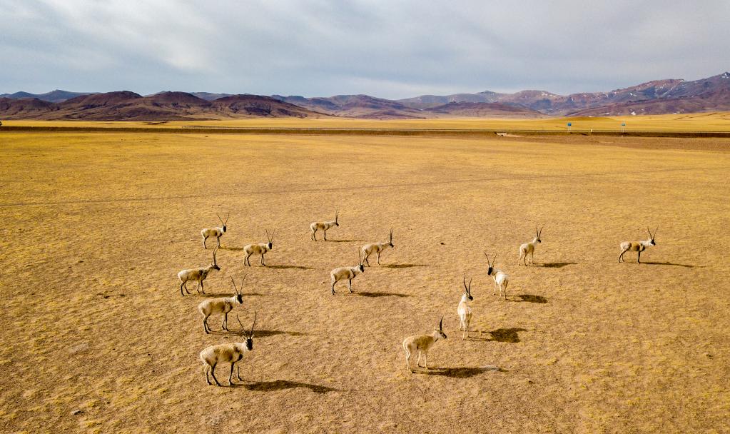 這是在阿里地區(qū)改則縣拍攝到的藏羚羊(4月13日攝,無人機照片)。公報顯示,藏羚羊種群數量由20世紀最低谷時的7萬余只增至30萬余只。新華社記者 姜帆 攝