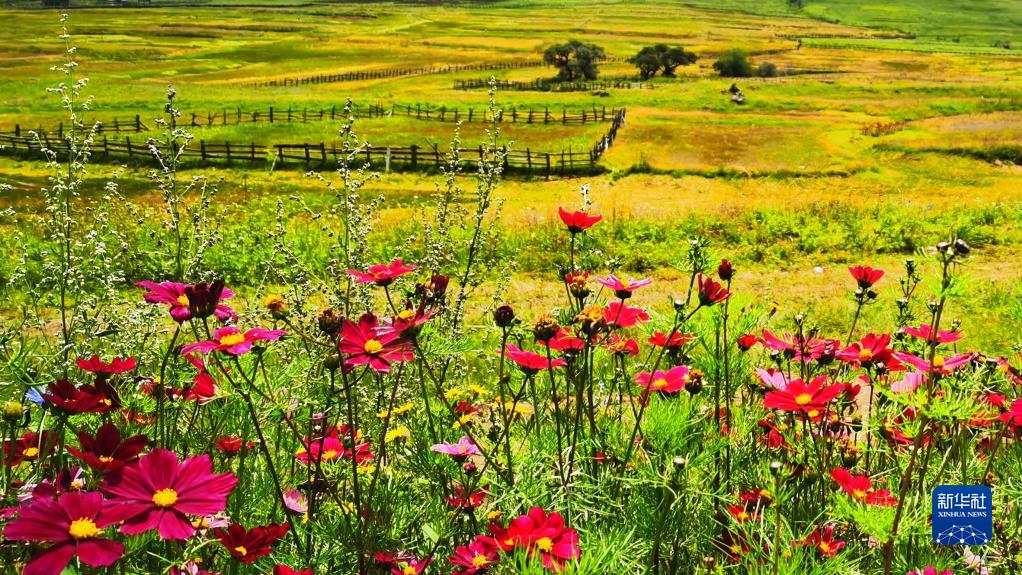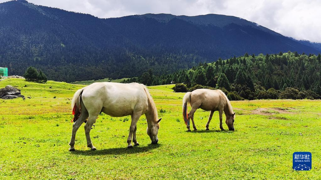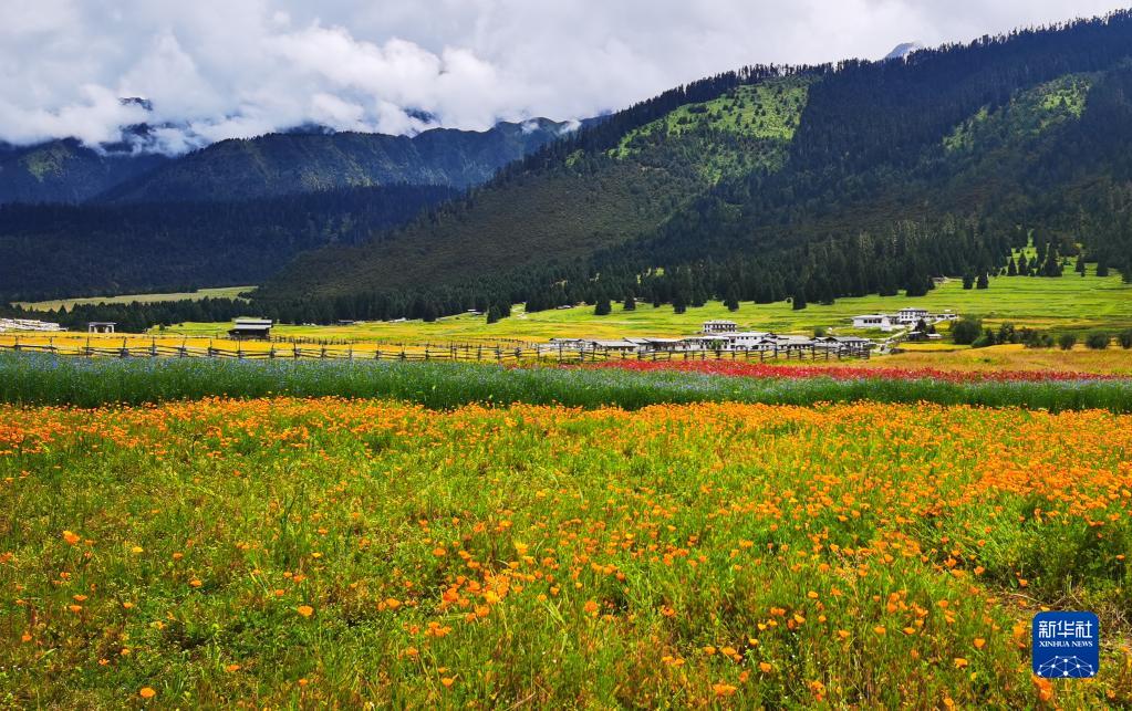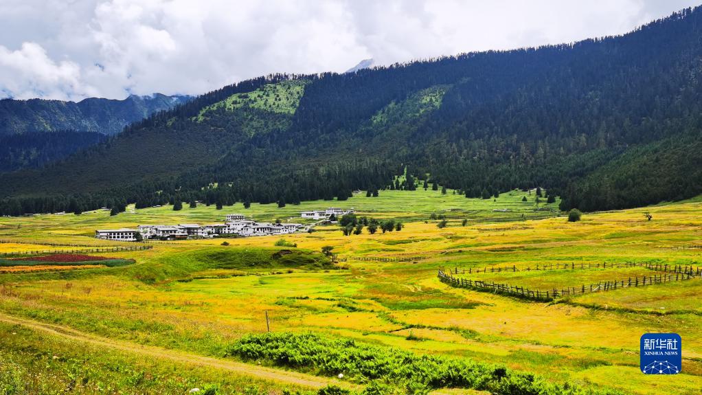 這是魯朗花海牧場景區(qū)(手機照片,8月6日攝)。新華社記者 沈虹冰 攝