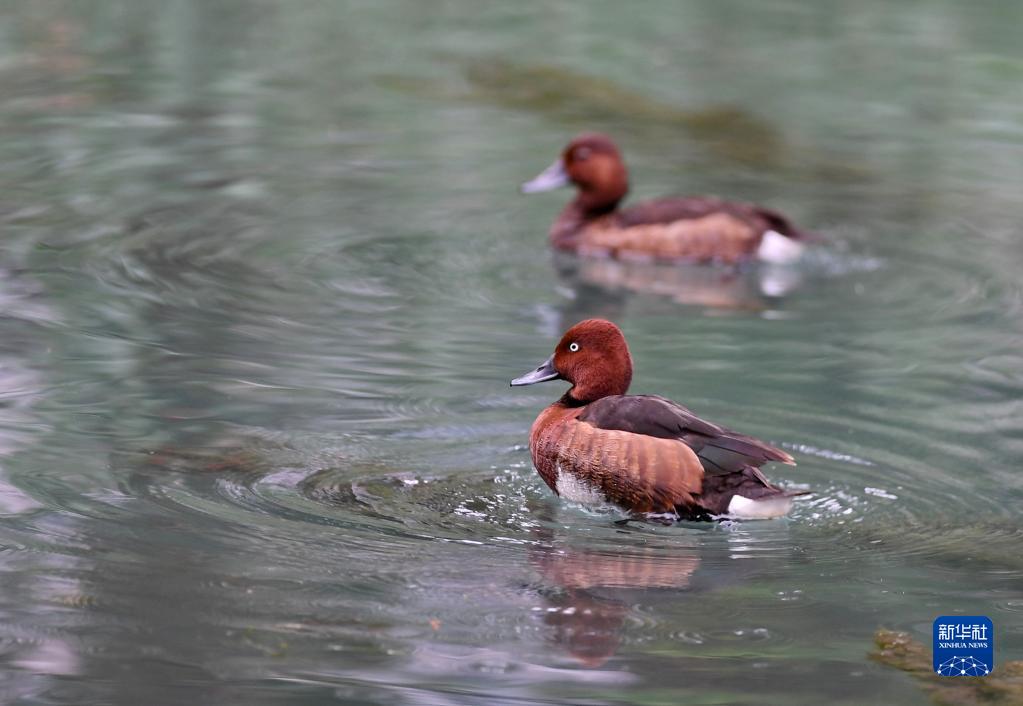 夏日里,白眼潛鴨和鳳頭潛鴨在西藏拉薩市拉魯濕地國家級自然保護區(qū)中干渠里覓食、嬉戲。