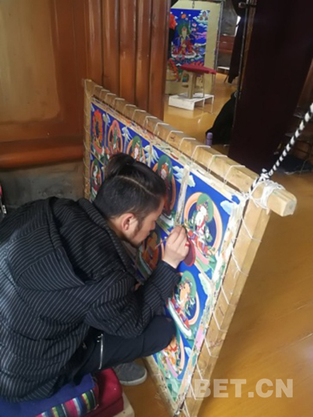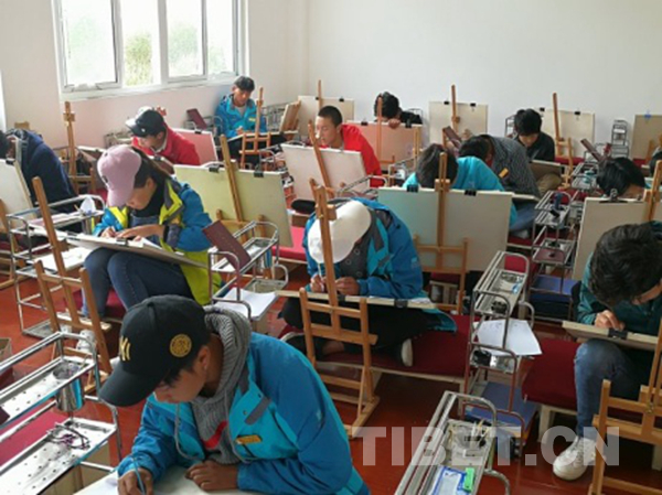 近年來,郎卡杰畫派唐卡將文化傳承保護和群眾就業(yè)增收有效地結合起來,逐漸走出了一條“政府扶持、公司培養(yǎng)、定向就業(yè)”的發(fā)展道路。