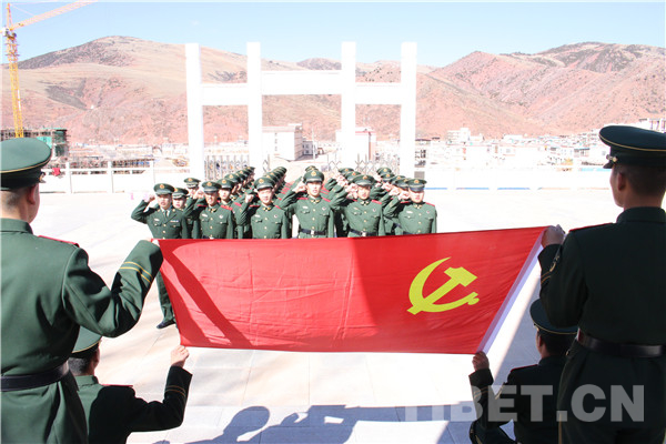 圖為駐芒康官兵重溫入黨誓詞。攝影:楊寧