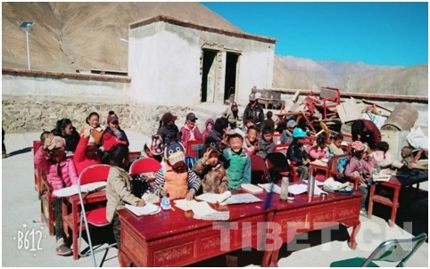1月份,正是西藏最冷的時(shí)候,在寒冷的冬季輔導(dǎo)孩子們學(xué)習(xí)不是一件容易的事情。還好西藏冬日的陽光在中午的時(shí)候是暖和的,工作隊(duì)就利用中午光照充足、比較暖和的時(shí)間,將學(xué)生們集中到各村村委大院進(jìn)行輔導(dǎo)學(xué)習(xí)活動(dòng)。