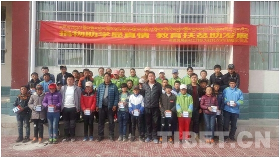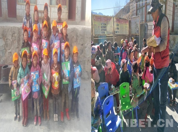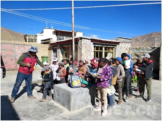 駐村隊(duì)長次仁扎西向孩子們發(fā)放學(xué)習(xí)用品