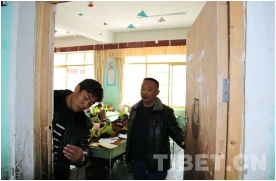 哲宗村駐村隊(duì)長強(qiáng)巴扎西帶領(lǐng)大家檢查亞木鄉(xiāng)小學(xué)教學(xué)設(shè)施
