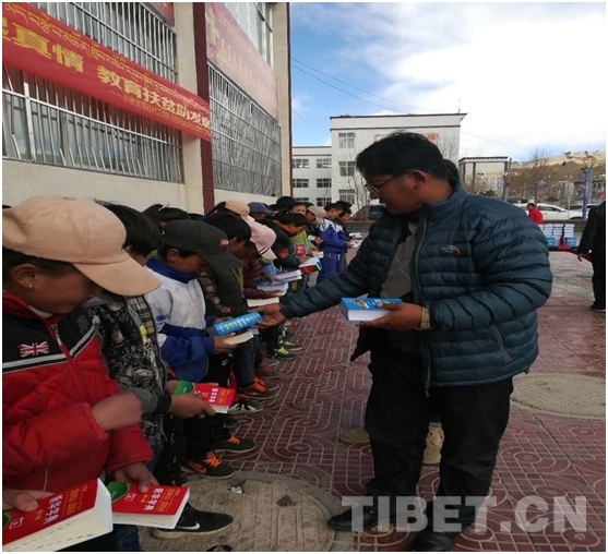 除了開辦寒假補(bǔ)習(xí)班,駐村工作隊(duì)還為各駐村點(diǎn)的學(xué)生爭取到了價(jià)值近2萬元的《現(xiàn)代漢語詞典》、《新華字典》等學(xué)習(xí)用品,并分赴昂仁縣中學(xué)、亞木鄉(xiāng)中心小學(xué)等,親手送到孩子們手上。