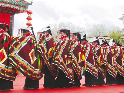 西藏傳統(tǒng)歌舞文化是藏族文明發(fā)展的產(chǎn)物,與藏族人民的風(fēng)俗習(xí)慣、宗教信仰等密切相關(guān),深深地滲透在人們的生產(chǎn)生活中。近年來,國家和地方非物質(zhì)文化遺產(chǎn)等有關(guān)部門對西藏傳統(tǒng)歌舞的相關(guān)器樂、服飾、道具、音樂、舞蹈、歌詞內(nèi)容等進行搜集和整理,切實做好西藏特色傳統(tǒng)文化的保護、傳承和發(fā)展。圖為西藏民間舞神冬洛熱巴四傳人。圖片來源:中國西藏網(wǎng),孫明光攝。(中國西藏網(wǎng) 綜合/李泓慶)