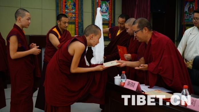 中國西藏網訊 6月1日,中國藏語系高級佛學院蒙古國僧人培訓班結業(yè)儀式在北京舉行。10名來自蒙古國烏蘭巴托賽音諾門寺、平均年齡只有14歲的學員,在國際兒童節(jié)的今天結業(yè)了。他們拿證書、得獎學金、獲捐贈經書……可謂是收獲滿滿。