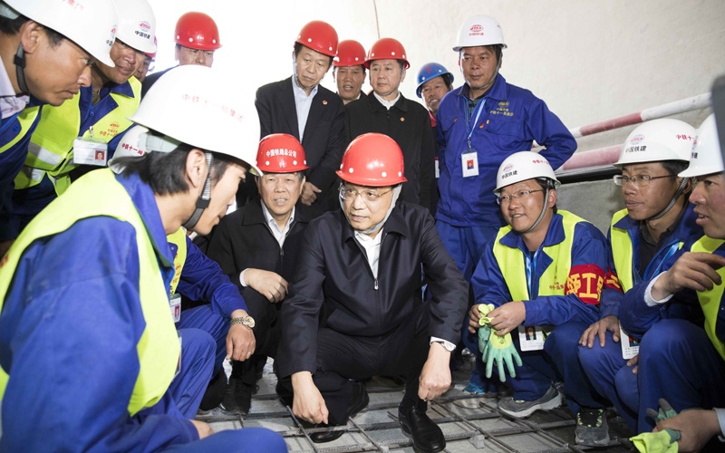 7月26日,李克強(qiáng)總理在山南市川藏鐵路拉林段施工現(xiàn)場(chǎng)。來(lái)源:中國(guó)政府網(wǎng)