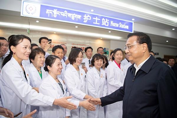 圖為李克強(qiáng)看望援藏醫(yī)護(hù)人員。圖片來源:中國政府網(wǎng)
