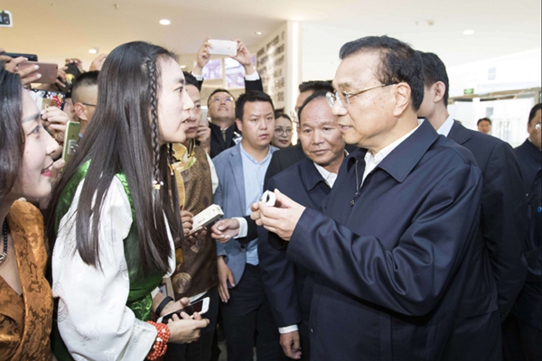 李克強(qiáng)一下飛機(jī)就來到林芝西嘎門巴村,他走進(jìn)群眾家中關(guān)切詢問生活情況,村民們說通過易地扶貧搬遷,現(xiàn)在住房好、道路通,收入比過去多得多,李克強(qiáng)祝他們生活越來越幸福。他說,脫貧攻堅、富民興藏重在發(fā)展,要以習(xí)近平新時代中國特色社會主義思想為指導(dǎo),貫徹落實黨中央、國務(wù)院部署,立足西藏實際,在可持續(xù)發(fā)展中實現(xiàn)民生不斷改善。