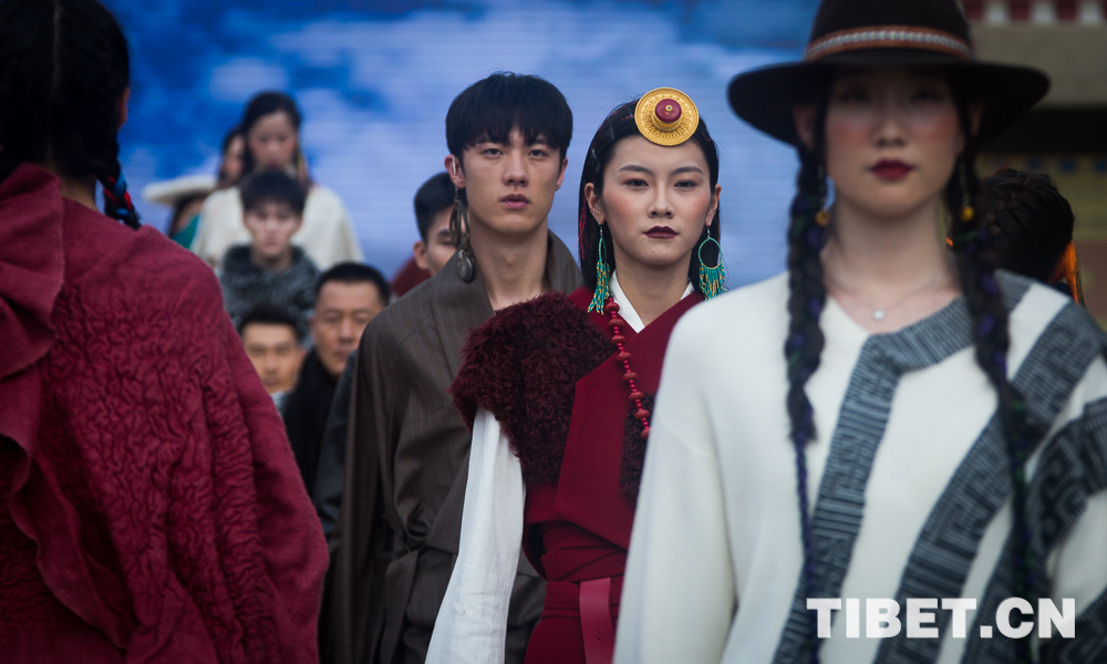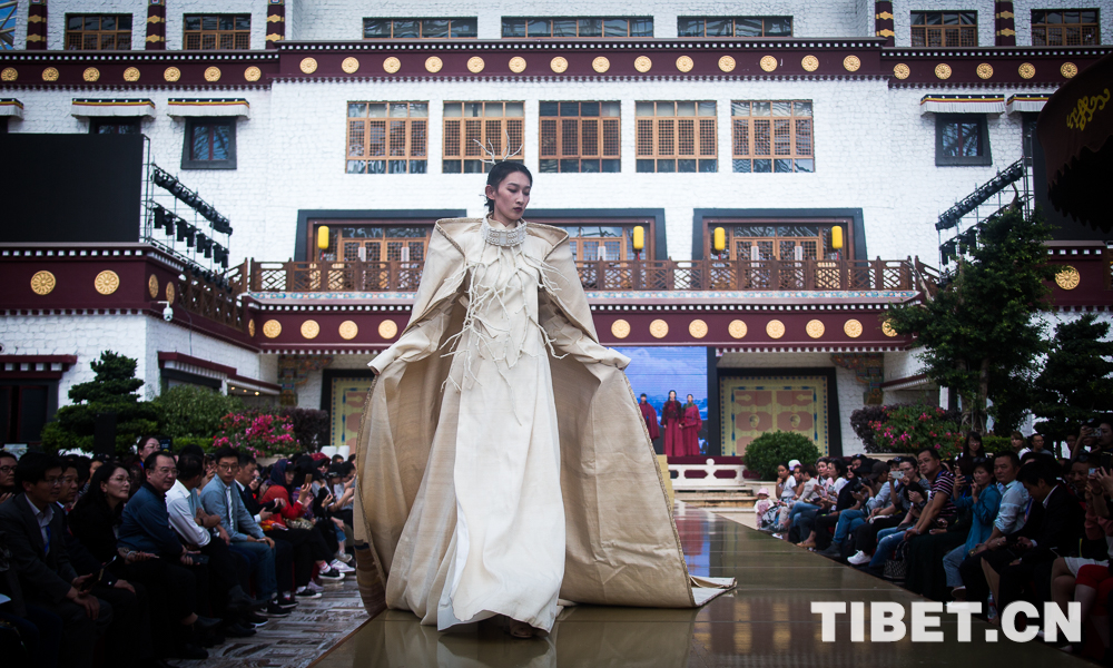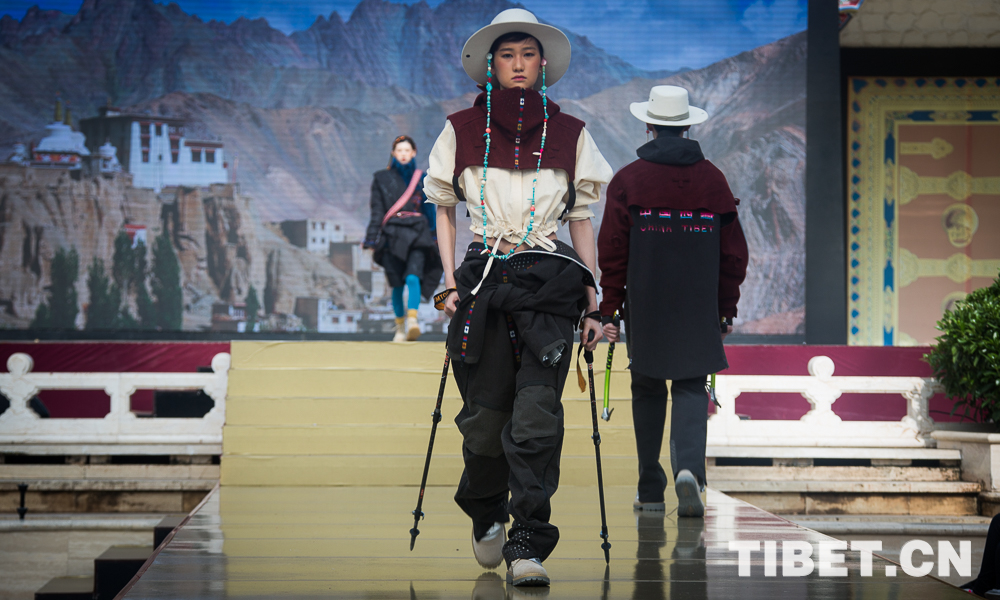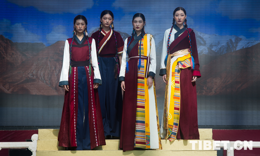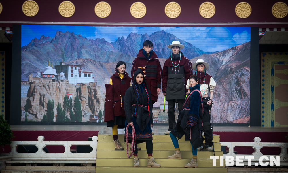 圖為身著經(jīng)過設(shè)計改版西藏民族服飾的模特。