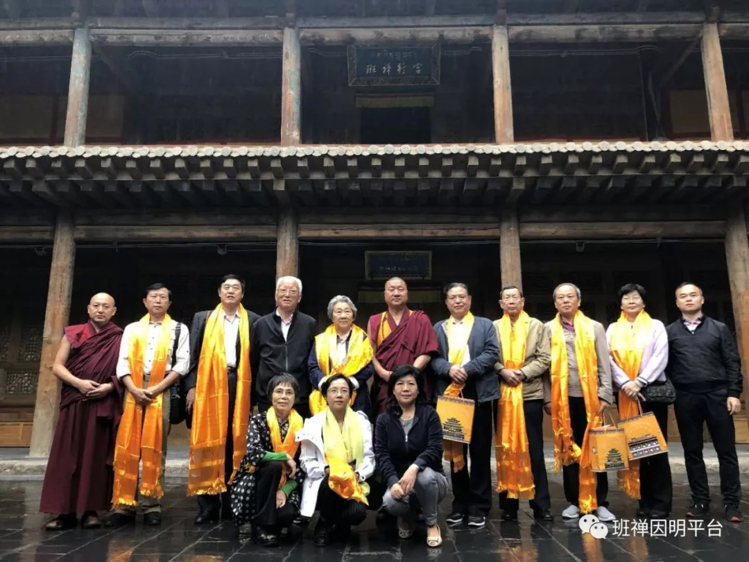 圖為周秉德一行在西寧宗喀大慈宏覺(jué)寺歷代班禪大師行宮前合影。圖片來(lái)自:班禪因明平臺(tái)