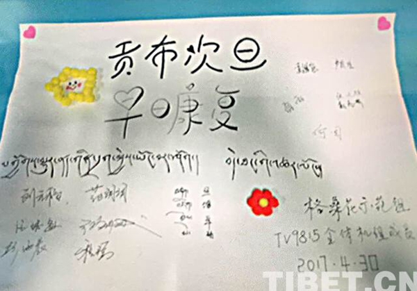 圖為2017年4月30日,TV9815從拉薩到北京執(zhí)飛途中,格?;ò嘟M護送因燒傷急需赴京救治的1歲零7個月的貢布次旦一家,并為其募款。藏航供圖