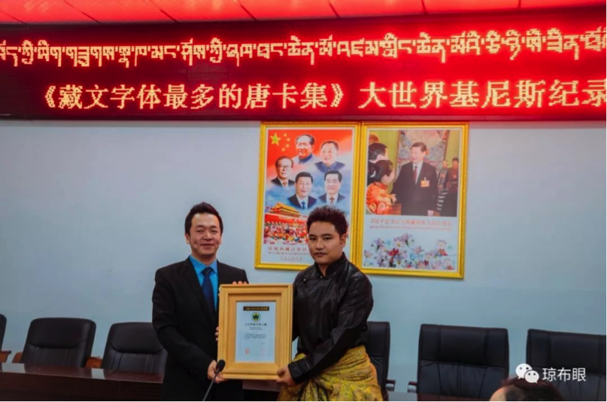 中國西藏網(wǎng)訊 2018年9月20日,大世界基尼斯在西藏丁青縣舉辦了《藏文字體最多的唐卡集》大世界基尼斯頒證儀式。