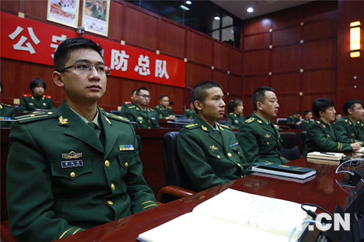 圖為西藏公安邊防總隊(duì)組織全區(qū)官兵收看慶祝改革開放40周年大會(huì)盛況
