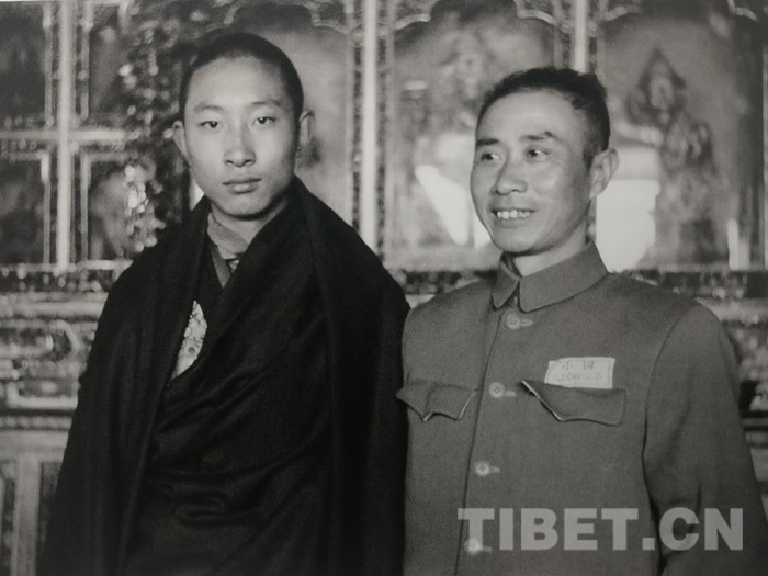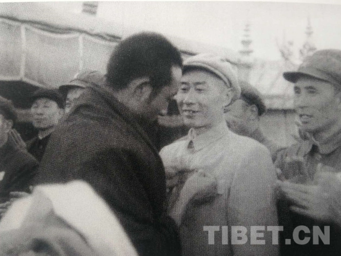 1952年4月28日,十世班禪額爾德尼?確吉堅贊及其堪布會議廳委員會全體人員從青海返回西藏,到達拉薩。張經武和人民解放軍駐拉薩機關、部隊、西藏地方政府各級官員、西藏地方部隊,三大寺喇嘛、拉薩市僧俗群眾等兩萬多人迎接。圖為張經武和十世班禪的合影。