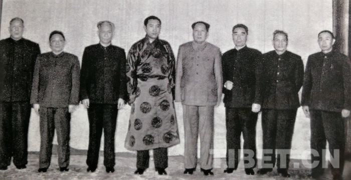 圖為1961年1月23日,毛澤東主席和中央領導接見十世班禪時的合影。圖中左起:李維漢、鄧小平、劉少奇、十世班禪、毛澤東、周恩來、陳云、張經武。(中國西藏網 記者/孔夏 圖片翻拍自由中共黨史出版社出版的書籍《張經武與西藏解放事業(yè)》)