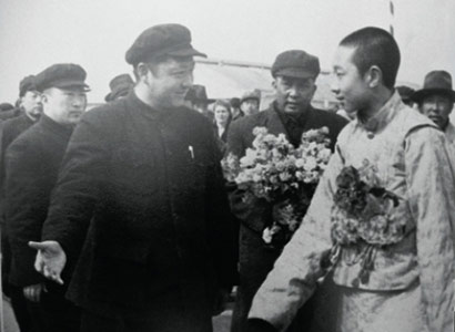 1951年4月中旬,習(xí)仲勛與十世班禪第一次會(huì)面。那時(shí),十世班禪率領(lǐng)班禪堪布會(huì)議廳官員赴京途經(jīng)西安,習(xí)仲勛作為西北局和西北軍政委員會(huì)主要負(fù)責(zé)人,到機(jī)場迎接。班禪走下飛機(jī)時(shí),一個(gè)眉清目秀、和善聰慧、舉止文雅、彬彬有禮的英俊藏族少年活佛形象,出現(xiàn)在習(xí)仲勛的眼前。在飛機(jī)舷梯下,十世班禪緊緊握住習(xí)仲勛的手,心情激動(dòng)地說:“我們是專程去北京向毛主席致敬的!我要把藏族人民對中央人民政府和毛主席的良好祝愿親口轉(zhuǎn)達(dá)給毛主席?!痹诋?dāng)晚歡迎會(huì)上,十世班禪表示堅(jiān)決擁護(hù)中央人民政府,決心與西藏各界愛國人士一道為西藏的解放和藏族人民的團(tuán)結(jié)努力奮斗。“有志不在年高”,十世班禪的愛國熱情和坦誠豪爽的性格給習(xí)仲勛留下了深刻的印象。當(dāng)天,習(xí)仲勛把他接到西北局大院自己家中,十世班禪與習(xí)仲勛的大兒子習(xí)富平同齡,兩人很快就熟稔起來。