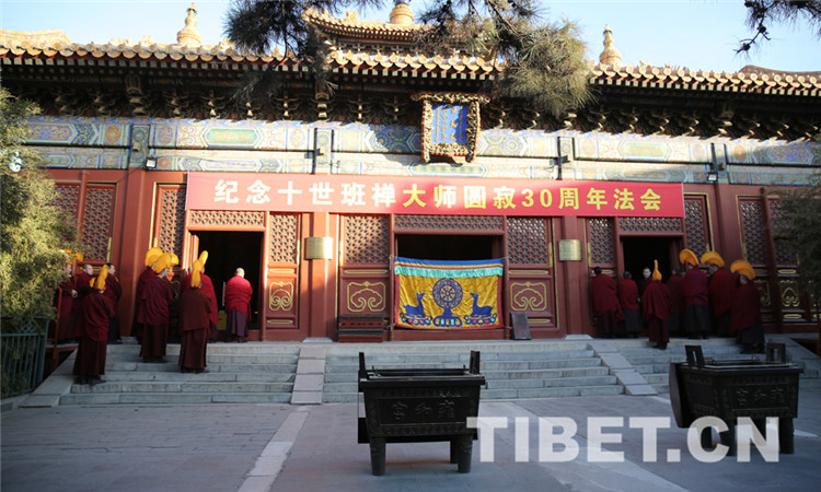 中國(guó)西藏網(wǎng)訊 1月28日,雍和宮舉行法會(huì),紀(jì)念十世班禪大師圓寂30周年。圖為上午8時(shí)許,約80位教職人員、僧人誦禱經(jīng)文,有序進(jìn)入法輪殿。