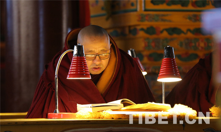 圖為僧人念誦經(jīng)文。