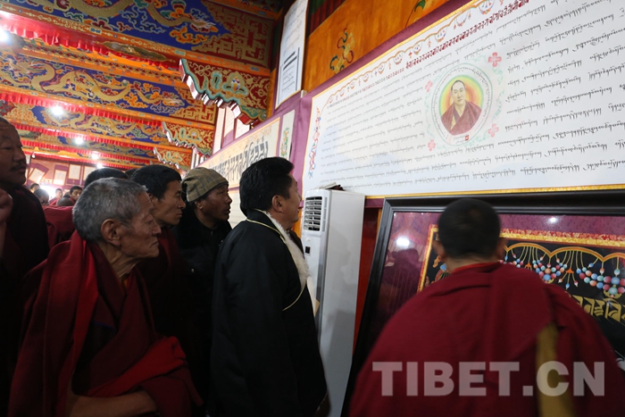 圖為扎什倫布寺的僧人們正在欣賞參賽書法作品。
