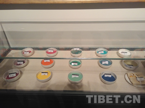 圖為繪制唐卡使用的顏料。攝影:孫健