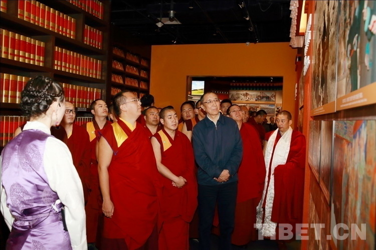 中國西藏網(wǎng)訊 4月10日下午,班禪額爾德尼?確吉杰布來到北京西藏文化博物館,參觀 “廢奴豐碑——西藏民主改革60周年特展”。當看到“宗教活動正常開展”這一環(huán)節(jié)時,十一世班禪多次駐足,并不時與現(xiàn)場人員討論。其中有一張圖片是2016年7月,十一世班禪在日喀則舉行時輪金剛法會時的場景。