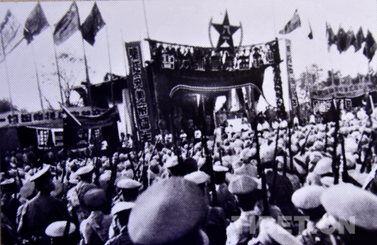 圖為十八軍在樂山舉行進(jìn)軍西藏誓師大會(huì)。翻拍:王媛媛
