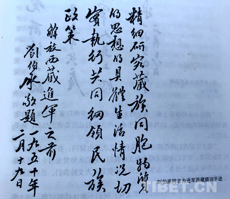 圖為劉伯承同志為進(jìn)軍西藏題詞手跡。翻拍:王媛媛