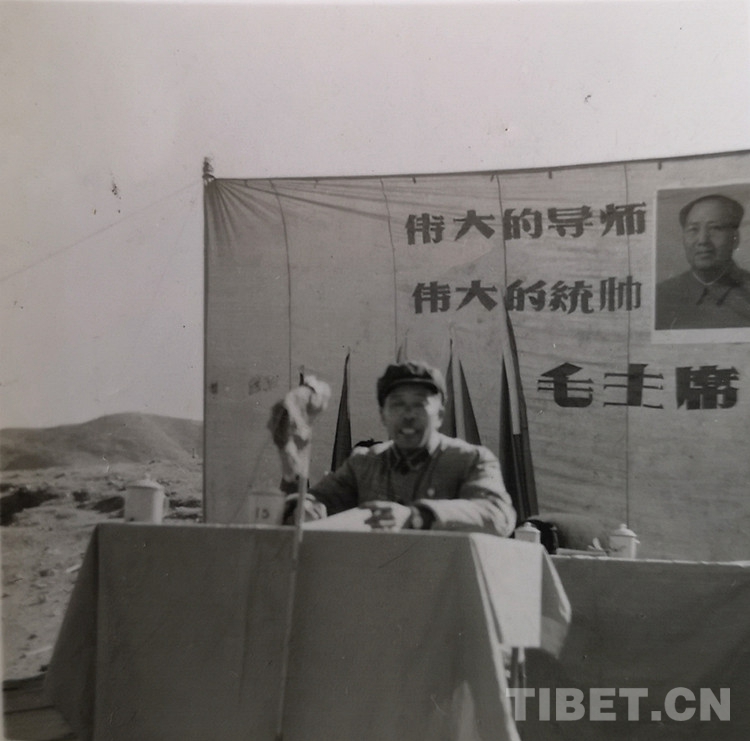 圖為1966年,王友卿在貢嘎機(jī)場(chǎng)通航典禮上講話。