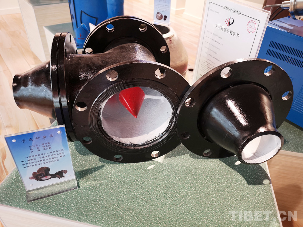 圖為楊永磊設計的管線耐磨器,直徑大,且設有分流錐、耐磨層,解決了粉劑介質(zhì)管線反復磨穿的問題 攝影:李元梅