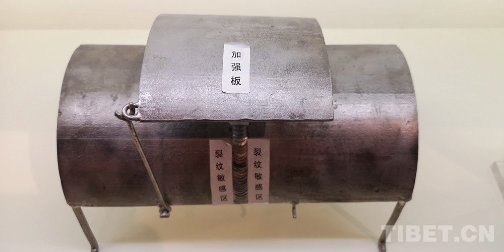 圖為楊永磊設計的管道裂紋帶壓處理工藝,利用焊接應力將裂紋逐漸收嚴,增加加強板,防止裂紋的蔓延,省時省力省費用,且安全可靠 攝影:李元梅