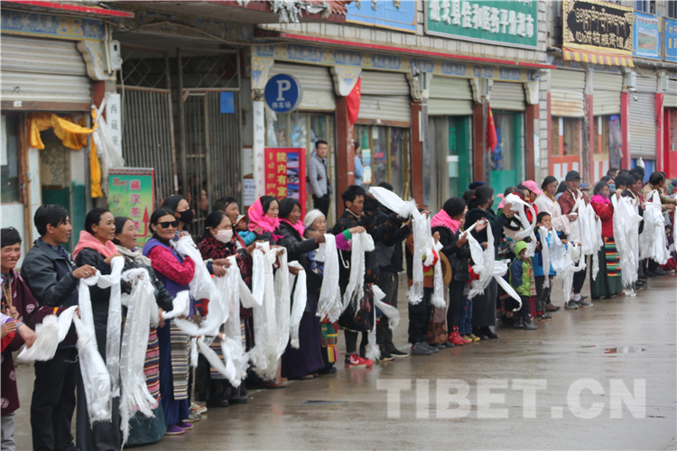 恰逢“羌塘恰青格薩爾賽馬藝術(shù)節(jié)”開幕,各地的僧俗信教群眾從方圓幾百公里的牧區(qū)趕來(lái),他們身著盛裝,手捧哈達(dá),滿含期待地在那曲市道路兩邊恭迎全國(guó)政協(xié)常委、中國(guó)佛教協(xié)會(huì)副會(huì)長(zhǎng)、中國(guó)佛教協(xié)會(huì)西藏分會(huì)會(huì)長(zhǎng)班禪額爾德尼?確吉杰布重返家鄉(xiāng)那曲。