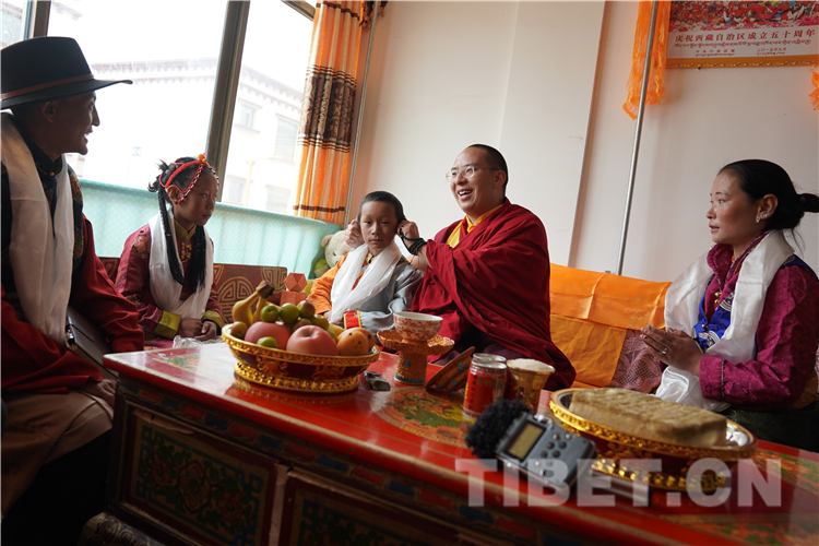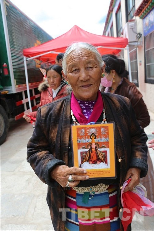 73歲的白珍老人從日喀則市趕過(guò)來(lái),由于年齡較大,在工作人員的攙扶下拜見(jiàn)到了十一世班禪。她說(shuō):“當(dāng)面拜見(jiàn)班禪大師我感到十分的開心和幸福,今天終于如愿了,這是我今生修來(lái)的福分,也是我們?nèi)业母?bào)。”
