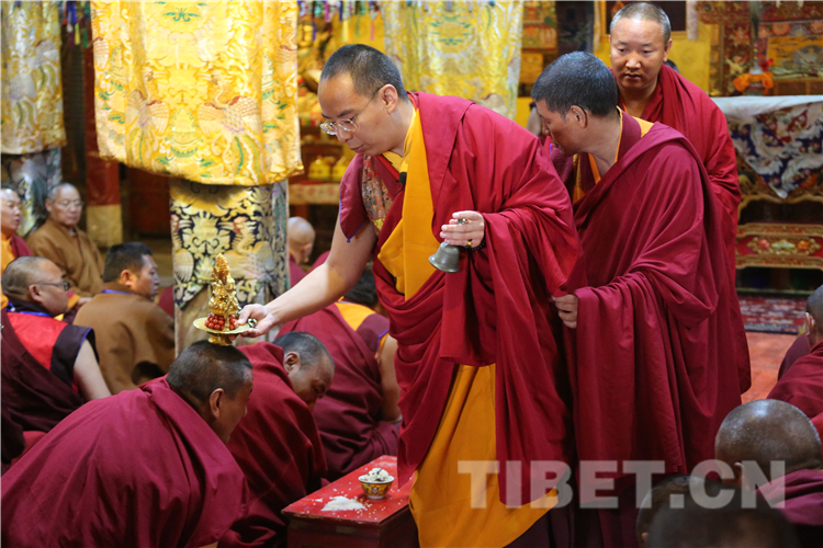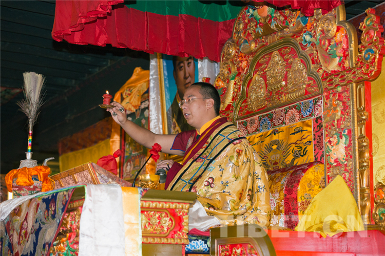 圖為十一世班禪為僧眾舉行長(zhǎng)壽灌頂 攝影:王淑