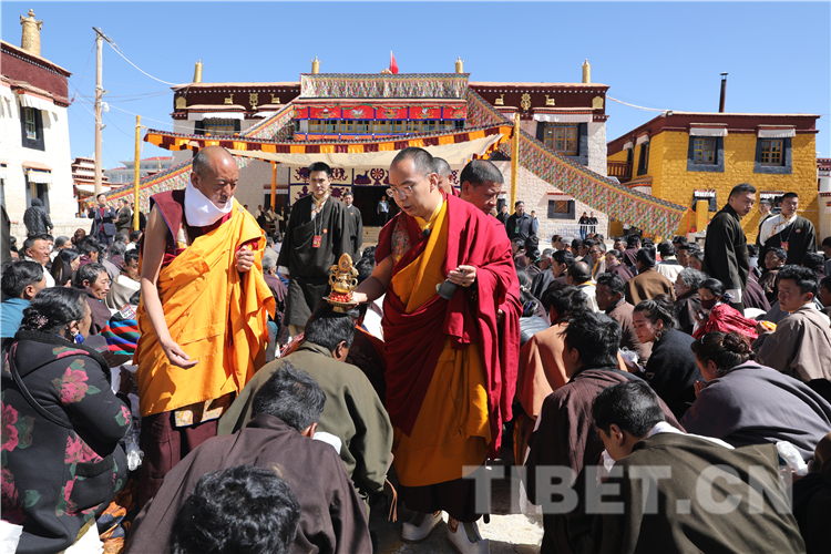 圖為十一世班禪為信教群眾舉行長(zhǎng)壽灌頂 攝影:扎西