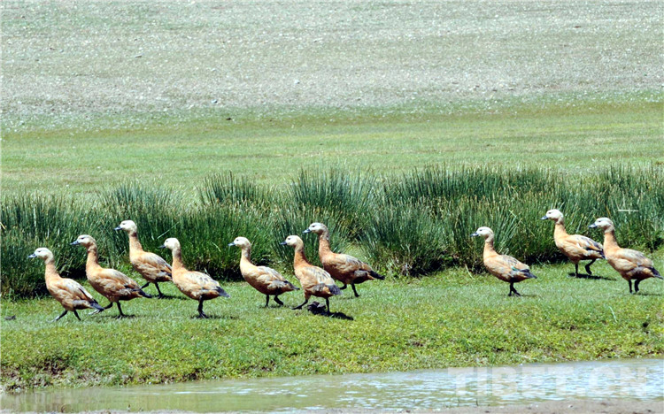 這是國家二級(jí)保護(hù)動(dòng)物赤麻鴨(黃鴨)在申扎草原河邊“漫步”。(唐召明2009年8月9日攝)