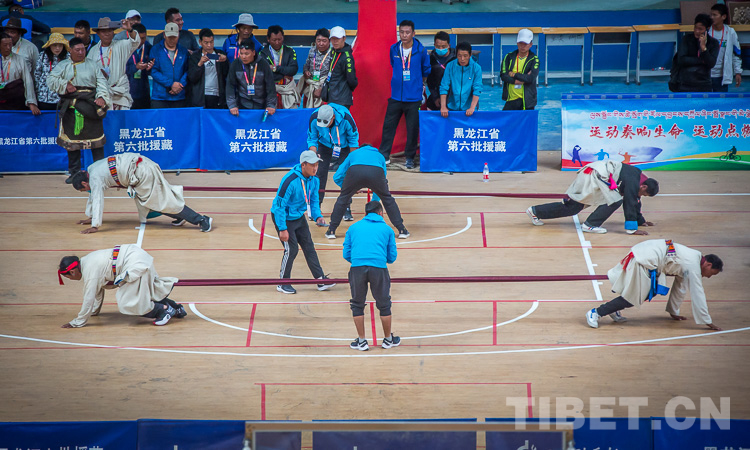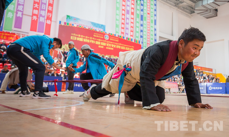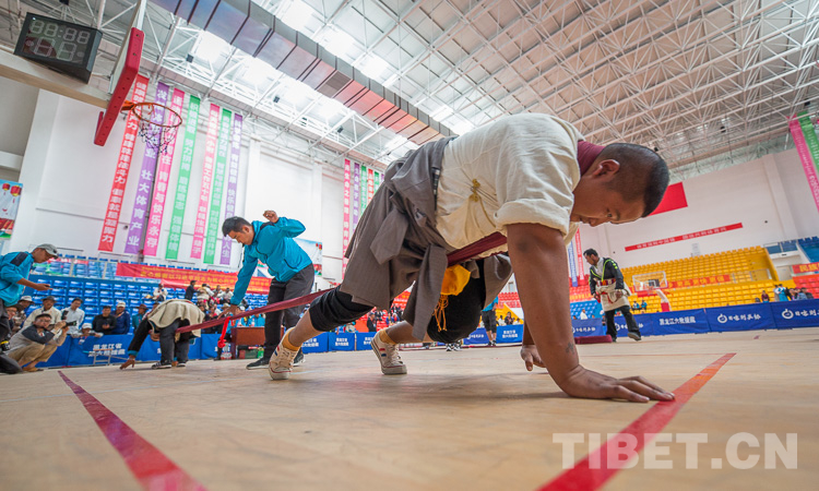 押加,藏語叫“浪波聶孜”,意為大象頸部技能。因其拔河方式需雙手雙腳附在地上用力,形似大象,故又稱“大象拔河”,是藏族人民非常喜愛的一項(xiàng)民族傳統(tǒng)體育運(yùn)動。(中國西藏網(wǎng) 記者/趙耀 鄭朔)
