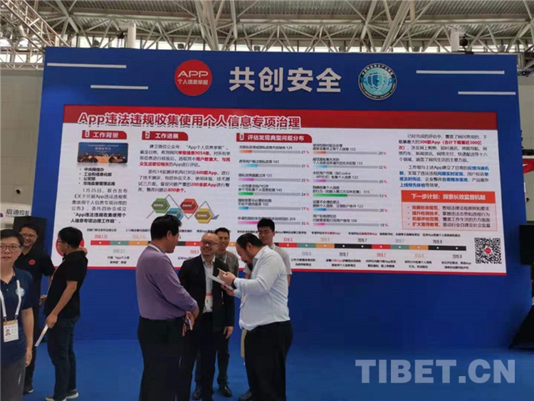 圖為2019年網(wǎng)絡(luò)安全博覽會上App個人信息保護(hù)展臺“共創(chuàng)安全”展板