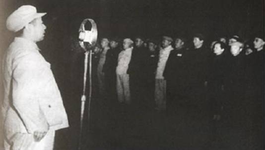 圖為參加中國人民政治協(xié)商會議第一屆全體會議的代表在天安門廣場舉行“人民英雄紀念碑”奠基典禮,周恩來代表主席團在奠基儀式上致詞 圖片來源:人民網(wǎng)