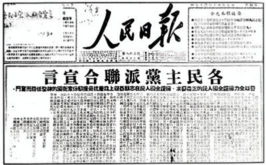 1950年11月4日,中國共產黨與各民主黨派發(fā)表聯(lián)合宣言:“誓以全力擁護全國人民的正義要求,擁護全國人民在志愿基礎上,為著抗美援朝,保家衛(wèi)國的神圣任務而奮斗。”圖為《人民日報》刊載的《各民主黨派聯(lián)合宣言》 圖片來源:人民網(wǎng)