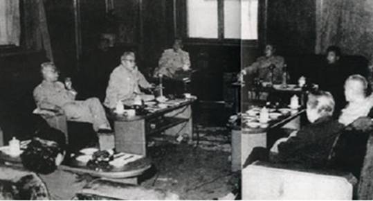 “雙周座談會”是中國共產黨和各民主黨派、無黨派人士及人民團體經常交換意見、溝通思想的一種形式。圖為1961年5月25日舉行的一次“雙周座談會”,會議由中共中央政治局委員、國家副主席董必武(左二)主持 圖片來源:人民網(wǎng)
