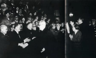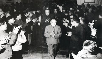 圖為1978年3月,中央統(tǒng)戰(zhàn)部舉行宴會(huì),招待各民主黨派和中華全國工商業(yè)聯(lián)合會(huì)(以下簡稱“全國工商聯(lián)”)負(fù)責(zé)人,中共中央副主席、中國人民政治協(xié)商會(huì)議第五屆全國委員會(huì)主席鄧小平,中國人民政治協(xié)商會(huì)議第五屆全國委員會(huì)副主席烏蘭夫出席了招待會(huì) 圖片來源:人民網(wǎng)