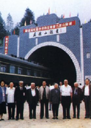 1995年5月,各民主黨派中央、全國工商聯(lián)負(fù)責(zé)人和無黨派代表人士考察即將正式運(yùn)營的京九鐵路。圖為考察團(tuán)成員在五指山隧道留影。左起:劉延?xùn)|、吳階平、程思遠(yuǎn)、費(fèi)孝通、王兆國、雷潔瓊、王光英、錢偉長、萬國權(quán) 圖片來源:人民網(wǎng)