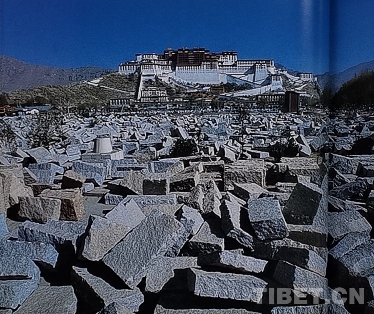 圖為布達拉宮廣場鋪設(shè)工程現(xiàn)場資料 翻拍:王淑