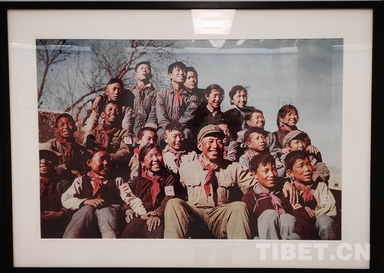 圖為藍志貴的攝影作品《“五好標(biāo)兵”大扎西與藏族少年兒童在一起》 翻拍:王茜