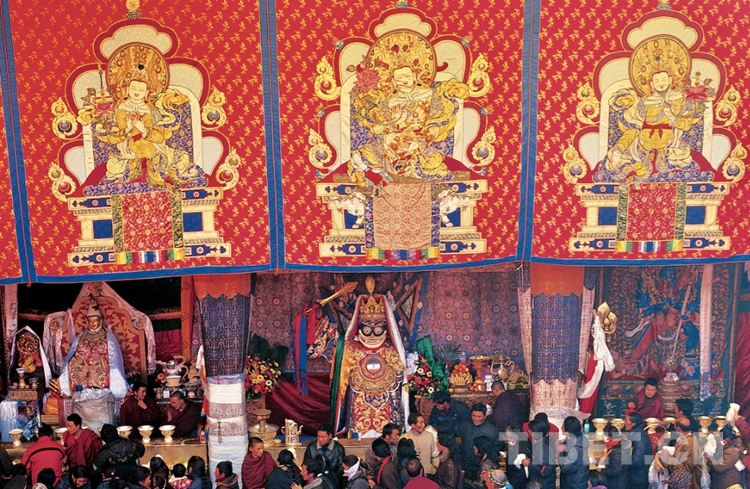 每年藏歷的六月底,在寺院靜休了一兩個月的僧人們解禁出寺,百姓為了犒勞僧人,備上自釀的酸奶敬奉,并舉行郊游野宴,為他們帶去藏戲表演……雪頓節(jié)由此形成。每年藏歷7月1日,雪頓節(jié)的開始也拉開了下半年節(jié)日的序幕。
