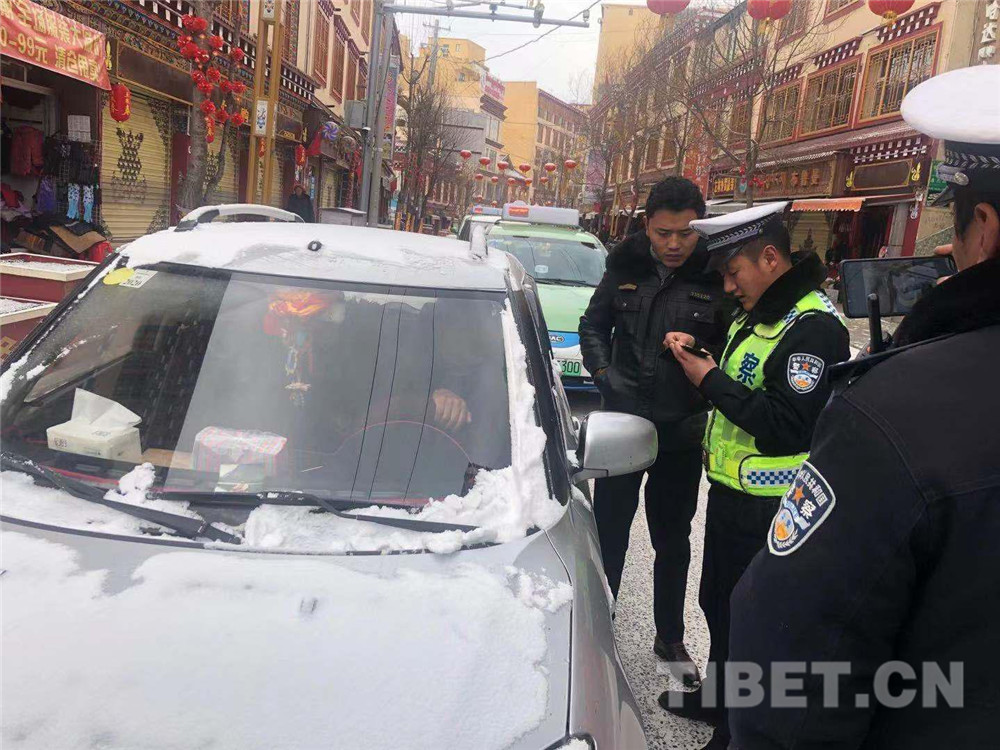 圖為甘孜縣公安交警大隊(duì)對(duì)來(lái)往車(chē)輛進(jìn)行檢查
