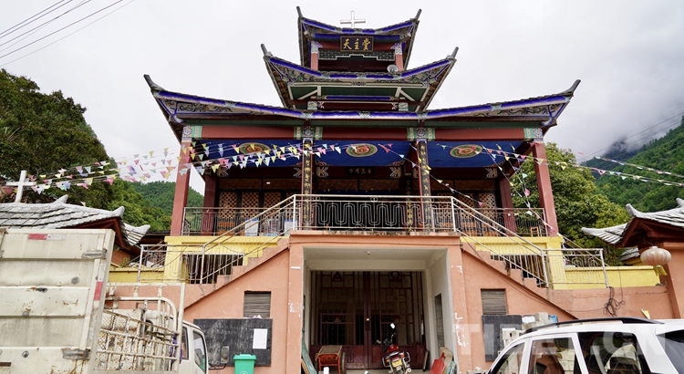 村口正在修路,一條窄窄的小道往山上攀升,3公里后就見到了村子。奇怪的是,村子里一個(gè)人也見不著,我們將車停下,正準(zhǔn)備下來四處看看,忽然上方傳來整齊的誦讀聲,抬頭一看,我們停車的地方立著一棟中式的仿古建筑,上面掛著一塊豎匾,上書:天主堂。一看日子,今天是星期天,村民們都在教堂做禮拜呢!輕輕地上樓,教堂的大門敞開著,幾十位村民坐在里面,誦讀著圣經(jīng)。我們靜靜地聽了一會兒,他們開始唱詩,歌詞聽不懂,甚至聽不出是哪種語言。唱完之后村民們突然紛紛站起來,彼此微笑,開始與身邊的人緊握雙手。把身邊夠得著的人的手都握一遍后,又恢復(fù)了安靜。我們在后面看得出神,被那種祥和感動。
